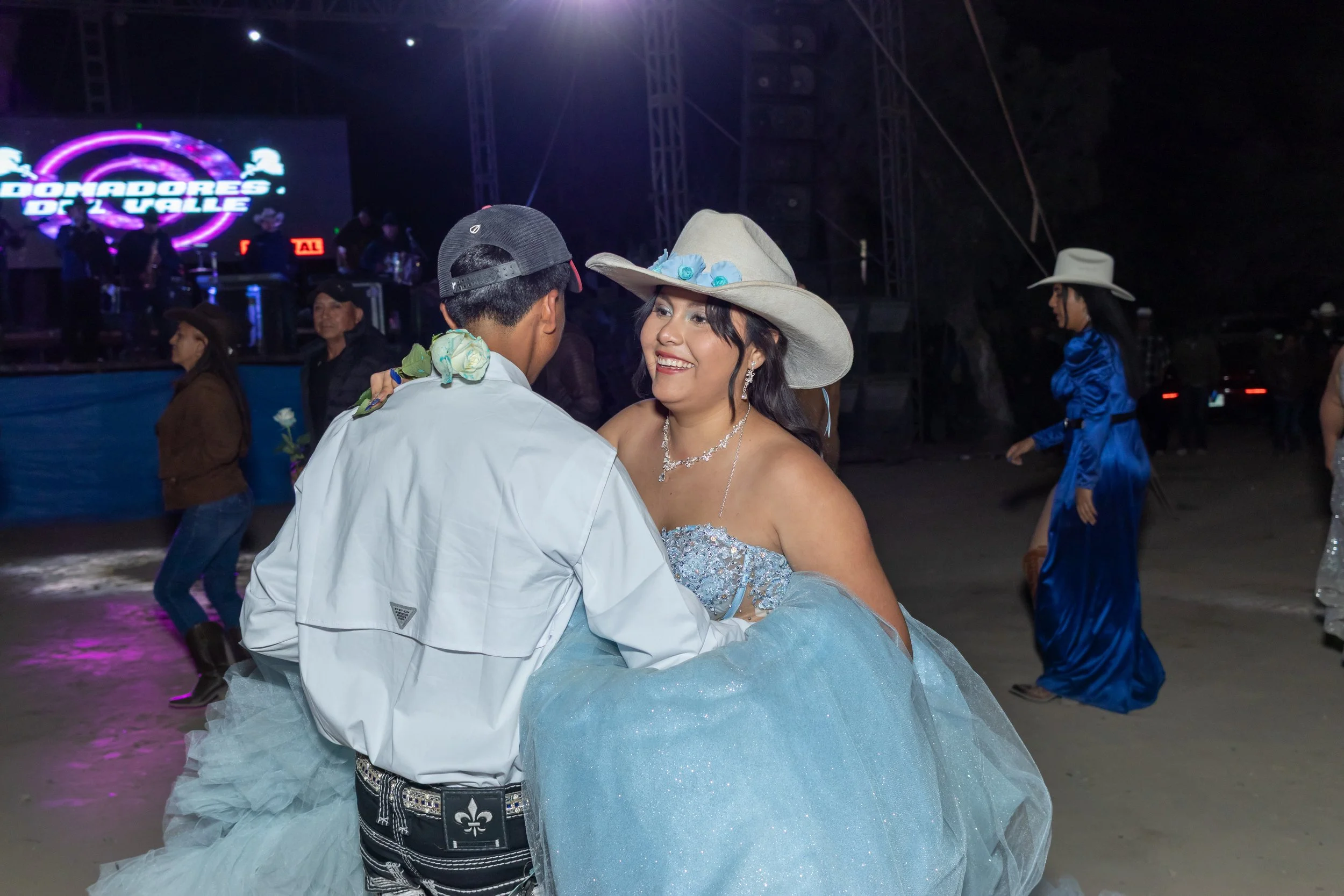 La quinceañera fue acompañada por numerosos jinetes y una caravana de vehículos, creando una entrada memorable que reflejó el cariño y la participación de la comunidad, así como el ambiente festivo que desde el inicio rodeó esta gran celebración. Entre música, entusiasmo y muestras de afecto, la llegada de Reyna Nataly al lugar del evento se convirtió en una escena digna de recordarse.